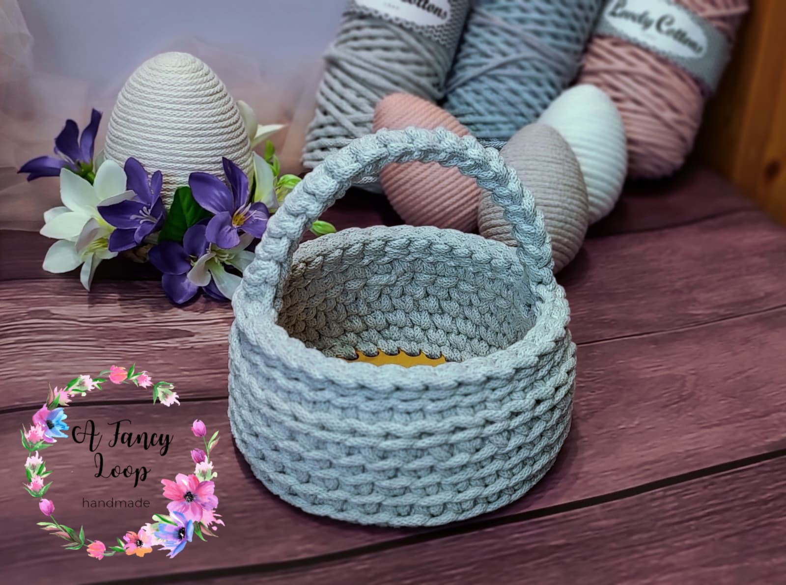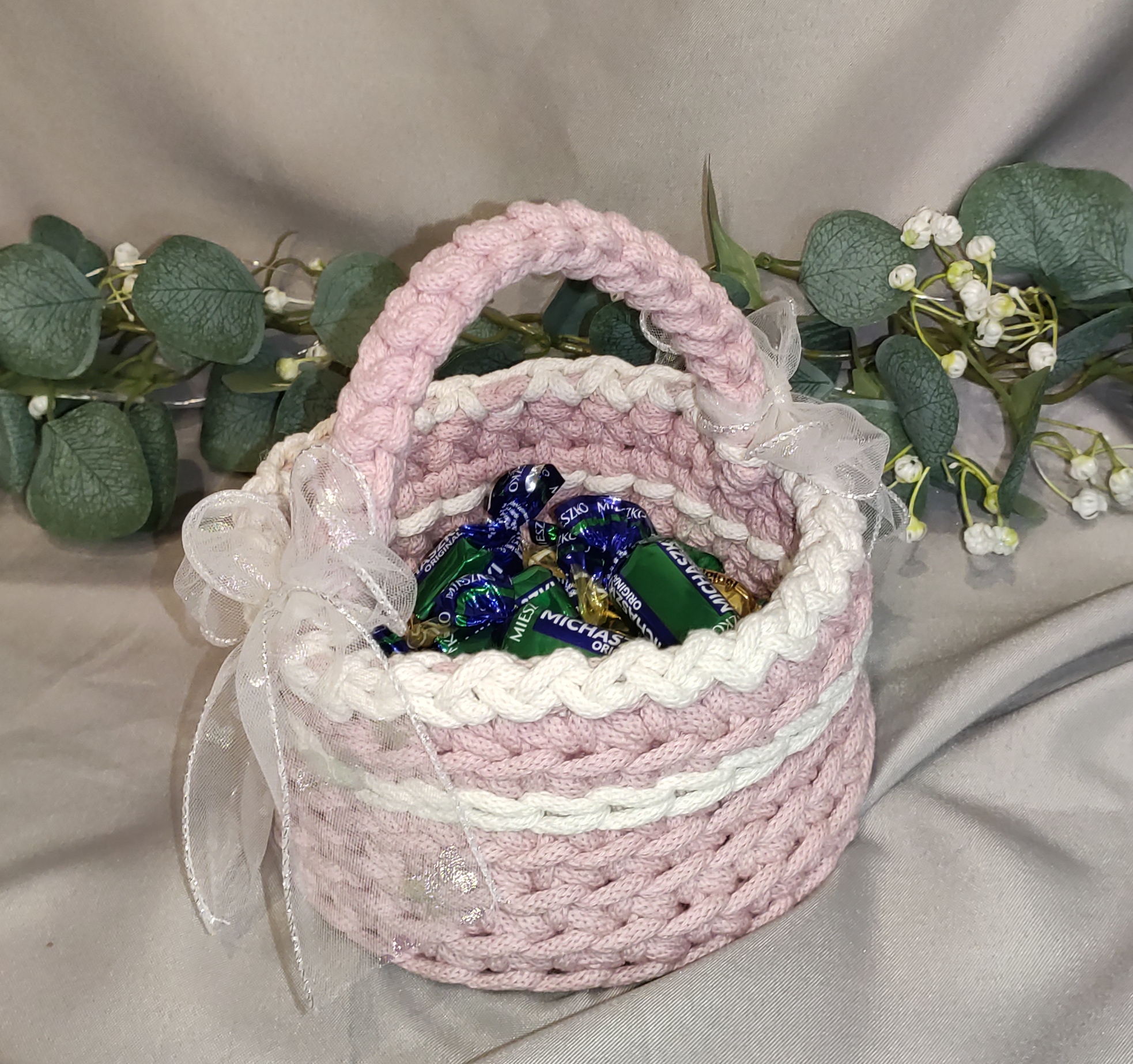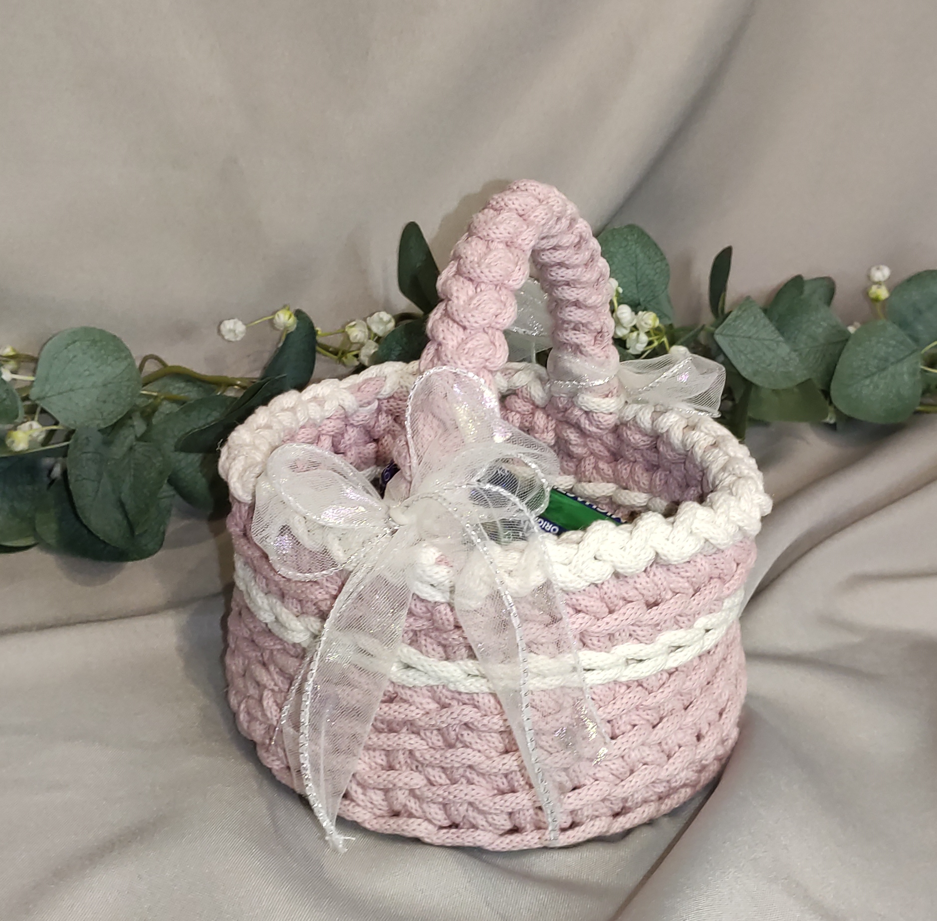 Każdy koszyczek wykonywany jest ręcznie, dlatego może delikatnie różnić się od zdjęć — to naturalna cecha rękodzieła.