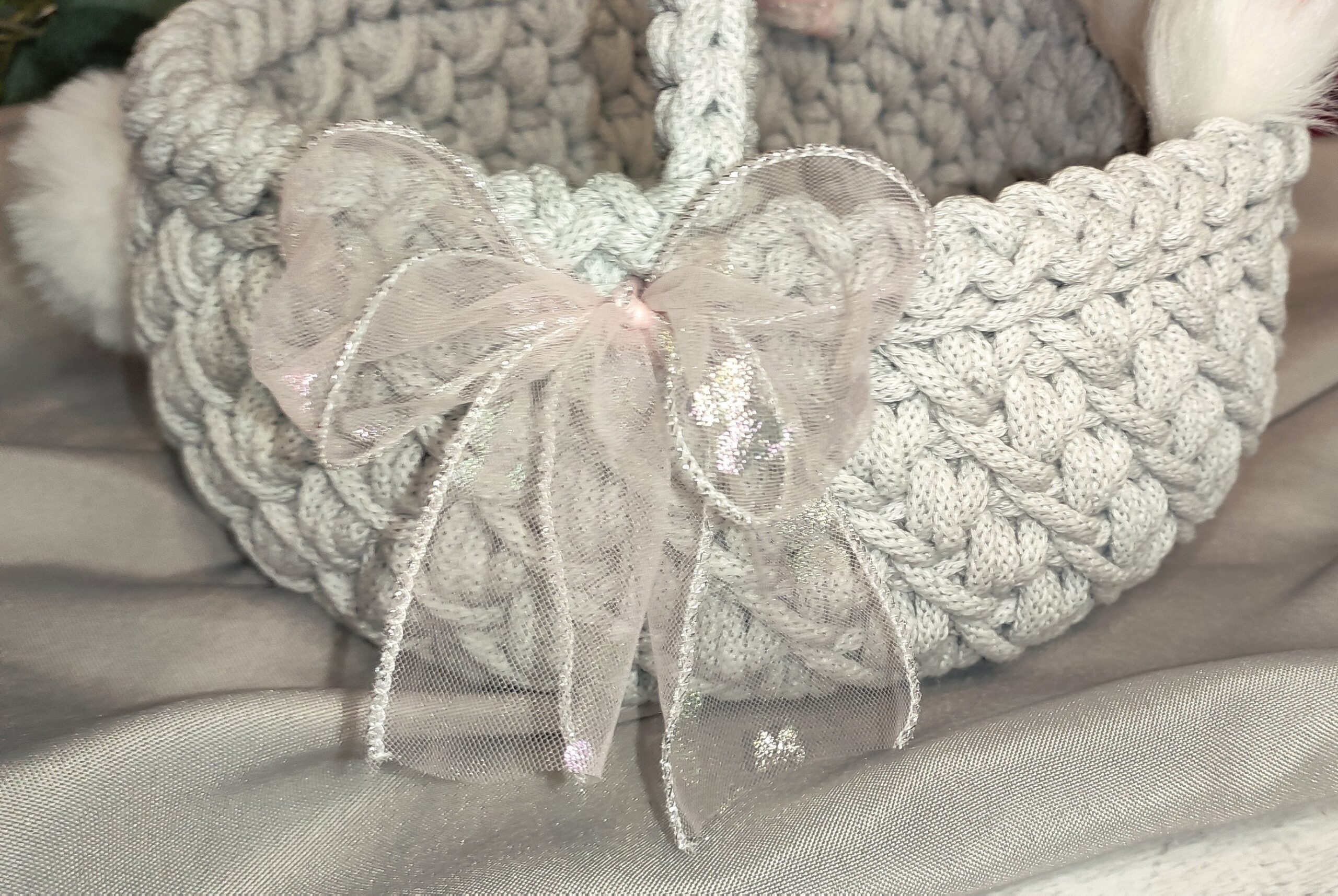 Ręcznie wykonany koszyczek wielkanocny dla dziecka z uszkami to uroczy, bajkowy dodatek na Wielkanoc, który zachwyci najmłodszych i wprowadzi do świąt ciepły, naturalny klimat. Powstaje techniką szydełkową z wysokiej jakości sznurka bawełnianego i osadzony jest na solidnej bazie ze sklejki, co zapewnia stabilność oraz wygodę użytkowania przez dziecko.