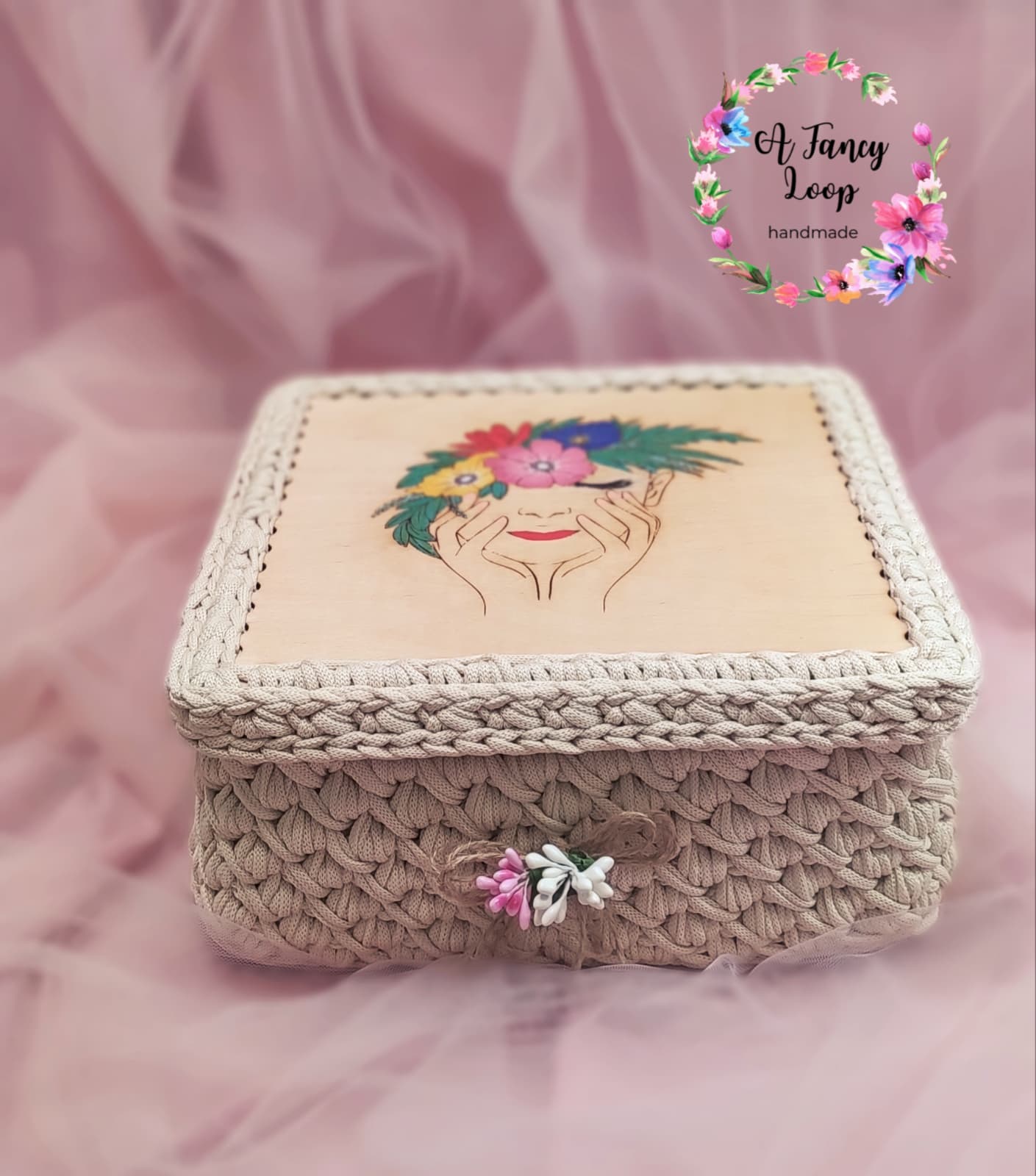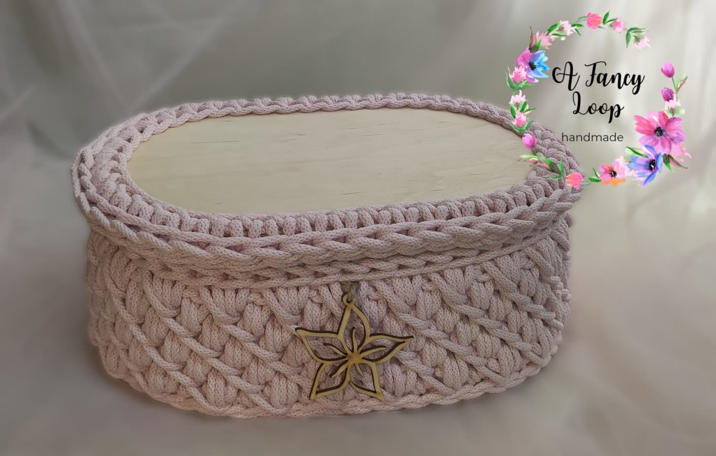 Ręcznie wykonany koszyk ze sznurka bawełnianego z drewnianą bazą to stylowy i funkcjonalny organizer handmade, który sprawdzi się jako szkatułka na biżuterię, koszyk na pamiątki lub personalizowany prezent. Naturalne materiały, staranne wykończenie oraz możliwość wykonania graweru na drewnianym dnie sprawiają, że koszyk łączy estetykę rękodzieła z praktycznym zastosowaniem w domu.