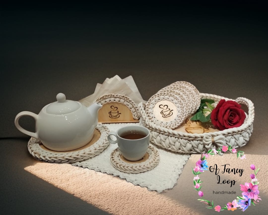 Możliwość wykonania zestawu z podkładkami pod kubki lub talerze.