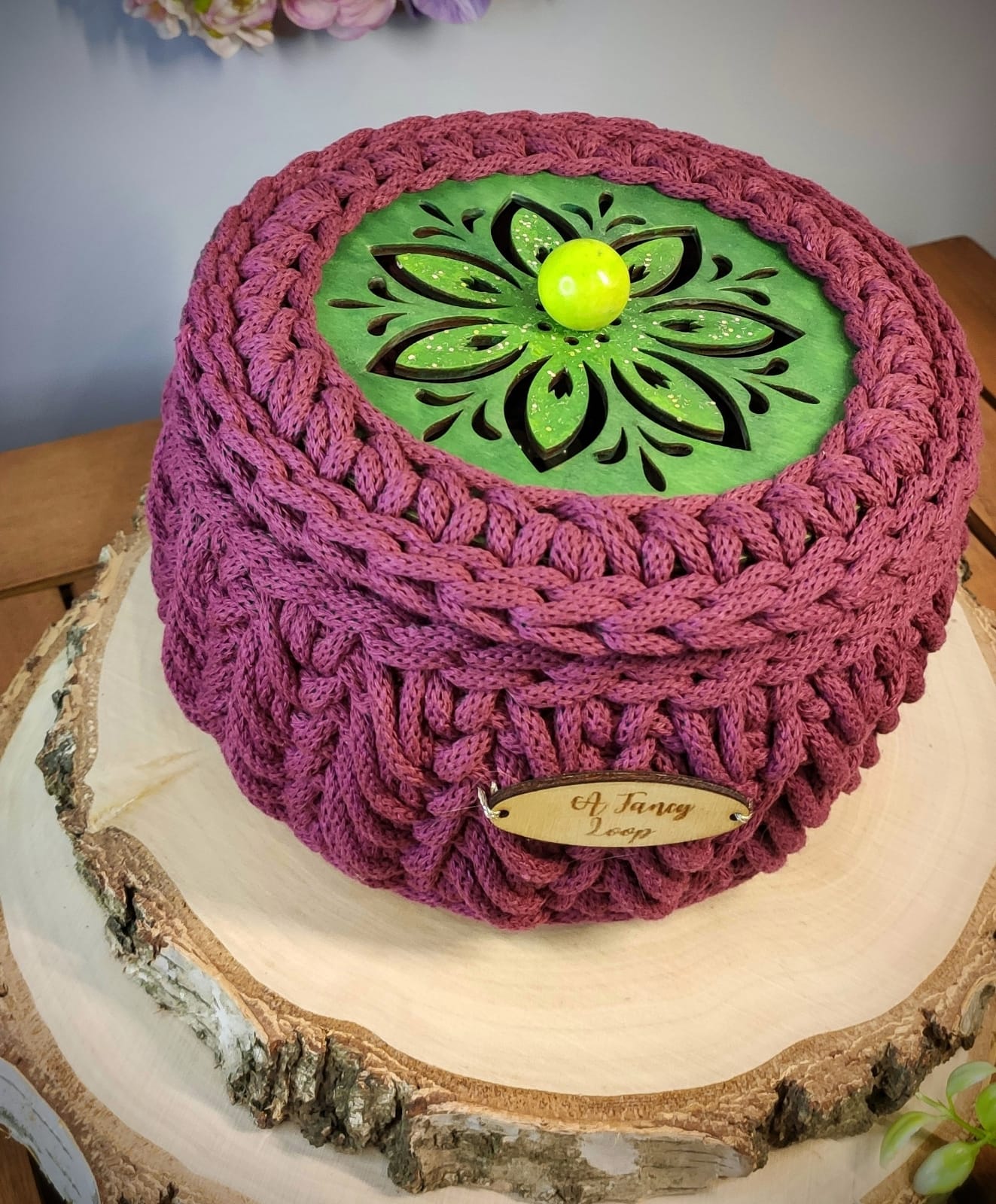 Ręcznie wykonana szkatułka na biżuterię w kolorze orchidea to elegancki organizer, który łączy funkcjonalność z dekoracyjnym charakterem. Intensywny, wyrazisty odcień pięknie komponuje się z ręcznie malowanym, drewnianym wieczkiem z motywem kwiatowym w odcieniach zieleni.